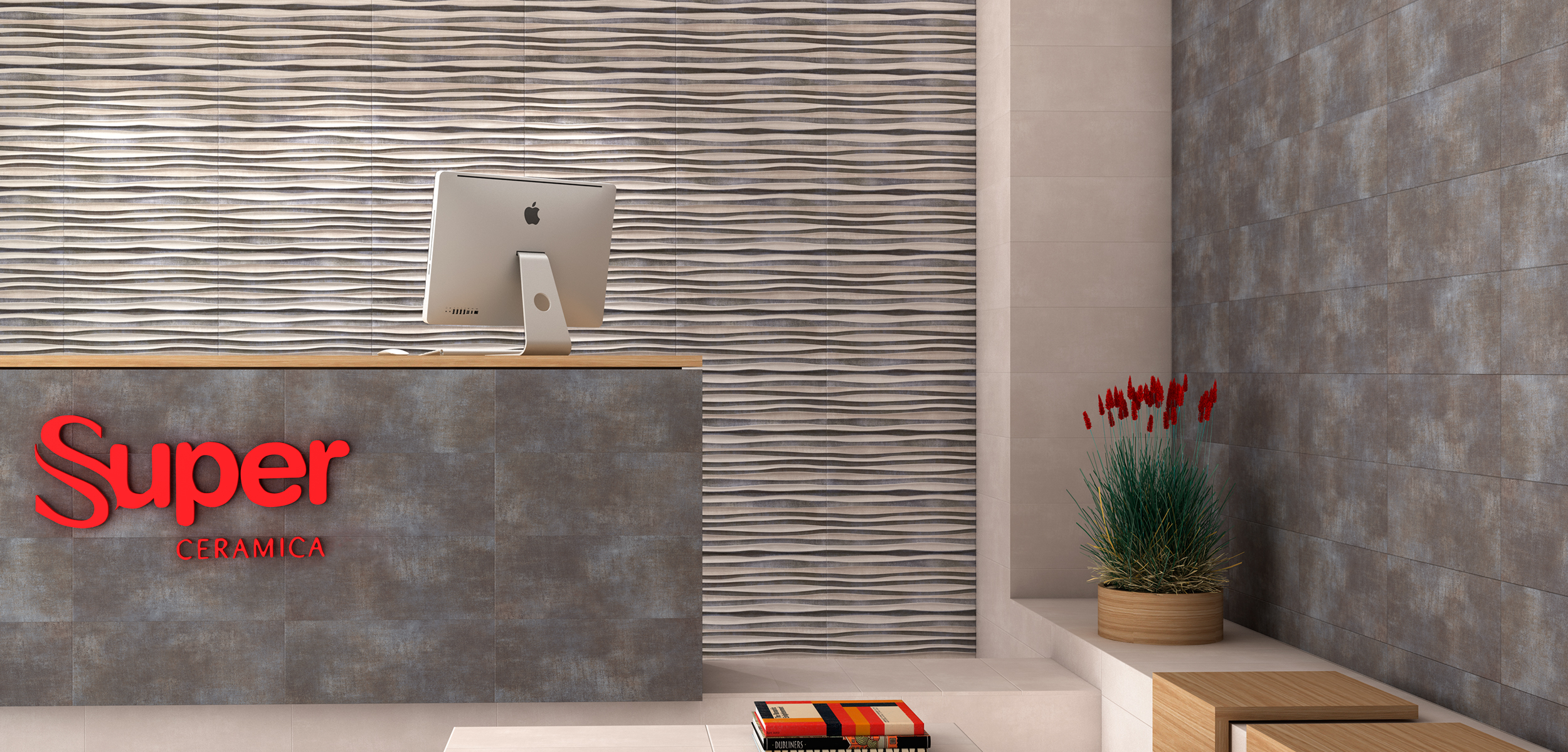AZULEJO RELIEVE MIX IRON TITANIO 20×50