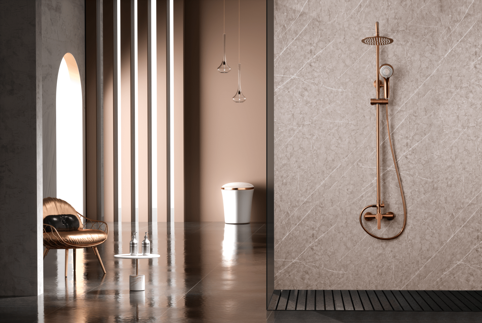 Acabado oro rosa cepillado.
